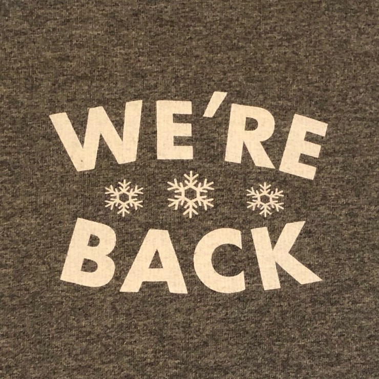 Looking for that hoodie or tee shirt to celebrate the return of Snowfest to Two Rivers this year? We can help you with that. We are happy to announce the release of our official Snowfest 2021 logo hoodie and tee shirt! They both proclaim We’re Back! on both the front at the back of the garment.
