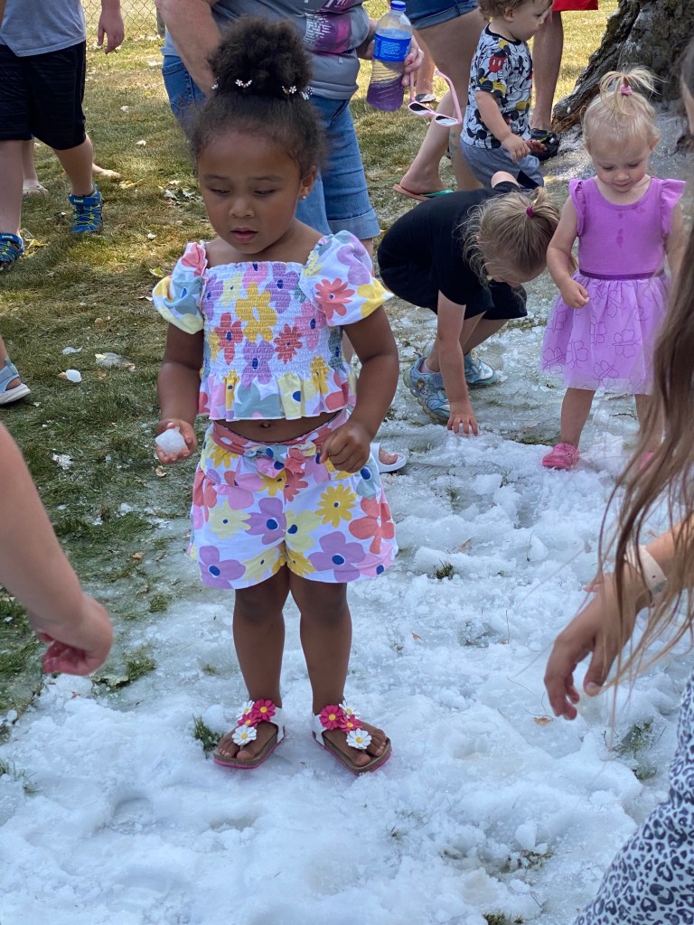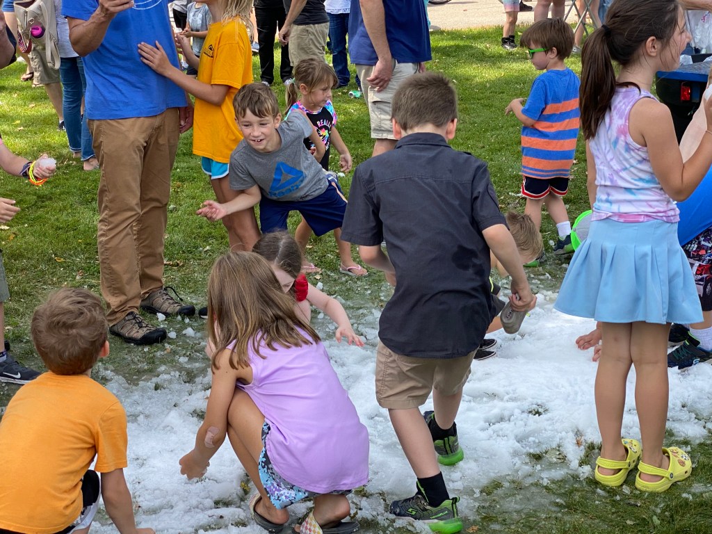 Saturday morning opened with the Snowfest parade. This time it was on the south side of Two Rivers on Columbus street. The streets were lined with smiling faces of people having fun. Chiller was in rare form and thanks to our friends with Sturm Special Effects, snowballs were thrown to the crowds delight! Following the parade families and the crowd joined us at Neshotah Park. A vendor fair was bustling with shoppers and the family area and carnival was full of people enjoying the great weather. Dieter and Sturm Special Effects even added to the fun and made it snow in the park. It was a first as that was the only snow in the US on July 23rd!! See some of the pictures below!!!