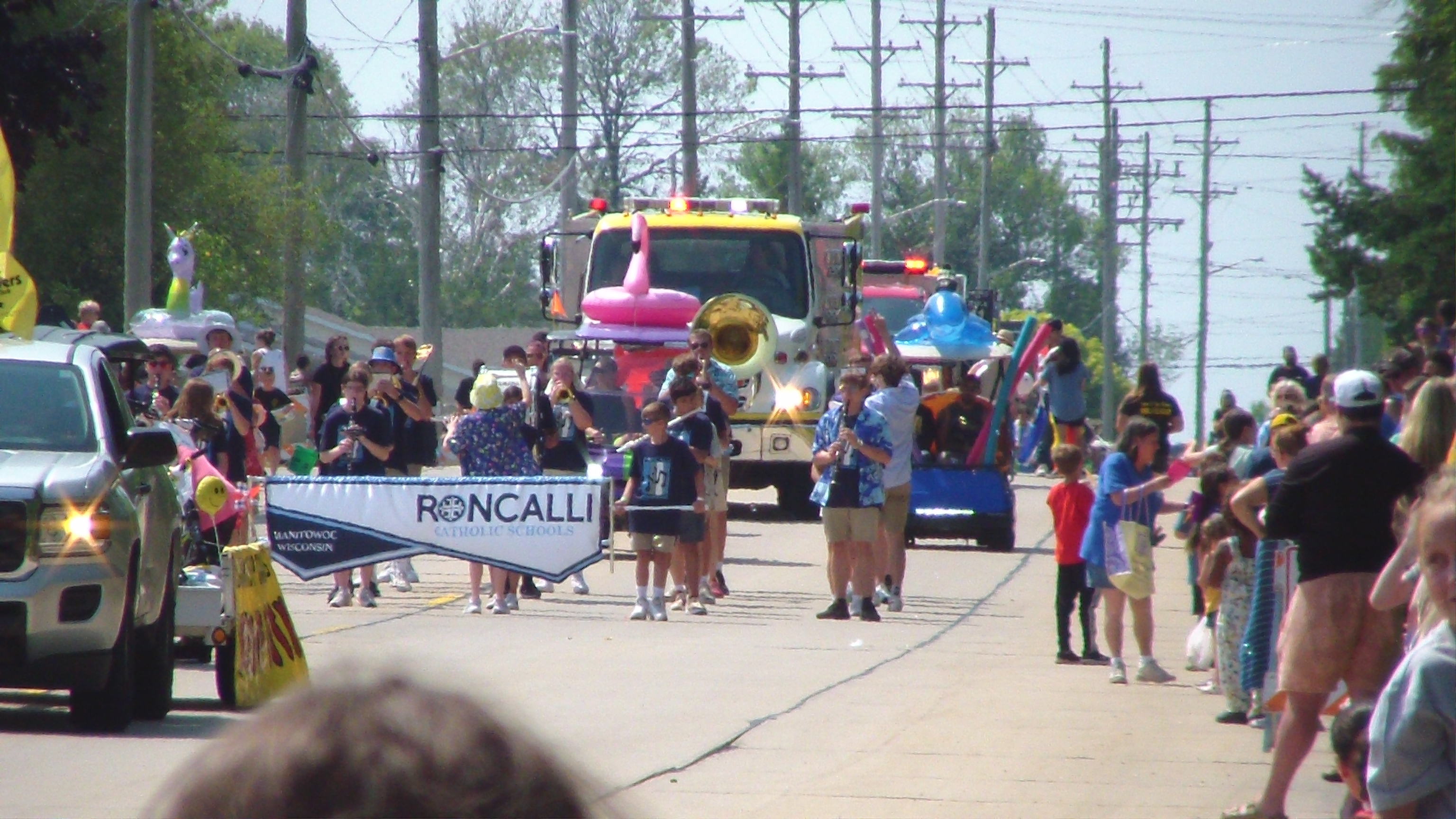 Saturday morning started with the SnowFest parade. The SnowFest float with Chiller on a moving surfboard, penguins sipping Margaritas in lawn chairs, and snowman rocking out on guitar, led the lineup down Columbus Street in Two Rivers. The streets themselves were lined with smiling, eager faces of young and old having fun. The real Chiller along with Santa Claus, peppered the crowd with snowballs as they came up the rear of the parade. Six parade entries won trophies for best floats.