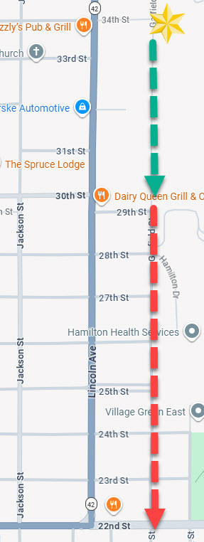 There is going to be plenty of good spots to watch the parade which lines up on 34th and Garfield with the lineup area being the green dashed arrow on the map and the parade route in red